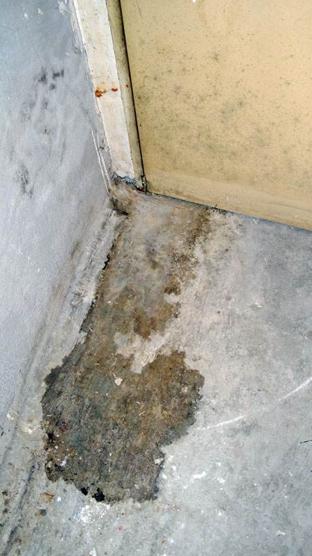 Les rongeurs ne sont pas responsables de cette tache. C'est autre chose. J'ai copié l'image pour la zoomer, et j'ai vu clairement ce que je supposais au premier coup d'il : il y a une fissure dans le mur, à environ 10-15 cm du cadre de porte, sur une bonne hauteur. On dirait que c'est par là que ça coule, ça ressemble un peu à un sel, mais de quoi je l'ignore.